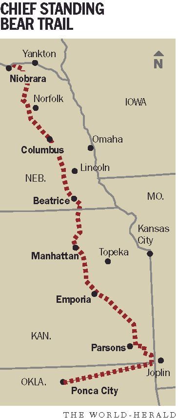NIOBRARA, Neb. — Before the trial, there was the trail. The story of Chief Standing Bear detoured through an Omaha courtroom more than 130 years ago. It started when the U.S. government uprooted the peaceful Ponca Tribe and forced it to move to Indian Territory. Nine Ponca perished during the 1877 exodus across eastern Nebraska and Kansas. More than 100 others died of hunger and disease in their new homeland in present-day Oklahoma.